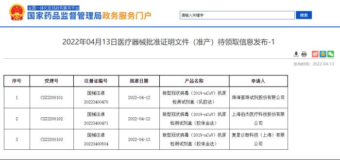 國(guó)家藥監(jiān)局又批準(zhǔn)3個(gè)新冠病毒抗原檢測(cè)試劑上市