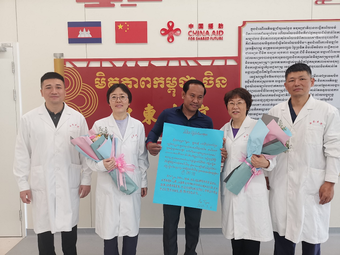 人民網(wǎng)曼谷5月16日電 (記者趙益普)16日,中國援柬中醫(yī)抗疫醫(yī)療隊在位于柬埔寨金邊的考斯瑪中柬友誼醫(yī)院舉辦“中醫(yī)門診開放日”活動,醫(yī)療隊為所有來門診的患者解疑、看診、贈送藥品。15日,中國援柬中醫(yī)抗疫醫(yī)療隊全體17名隊員獲得柬埔寨衛(wèi)生部頒發(fā)的柬埔寨王國騎士勛章。據(jù)悉,醫(yī)療隊已順利完成一年的任務(wù),即將于近期返回中國。