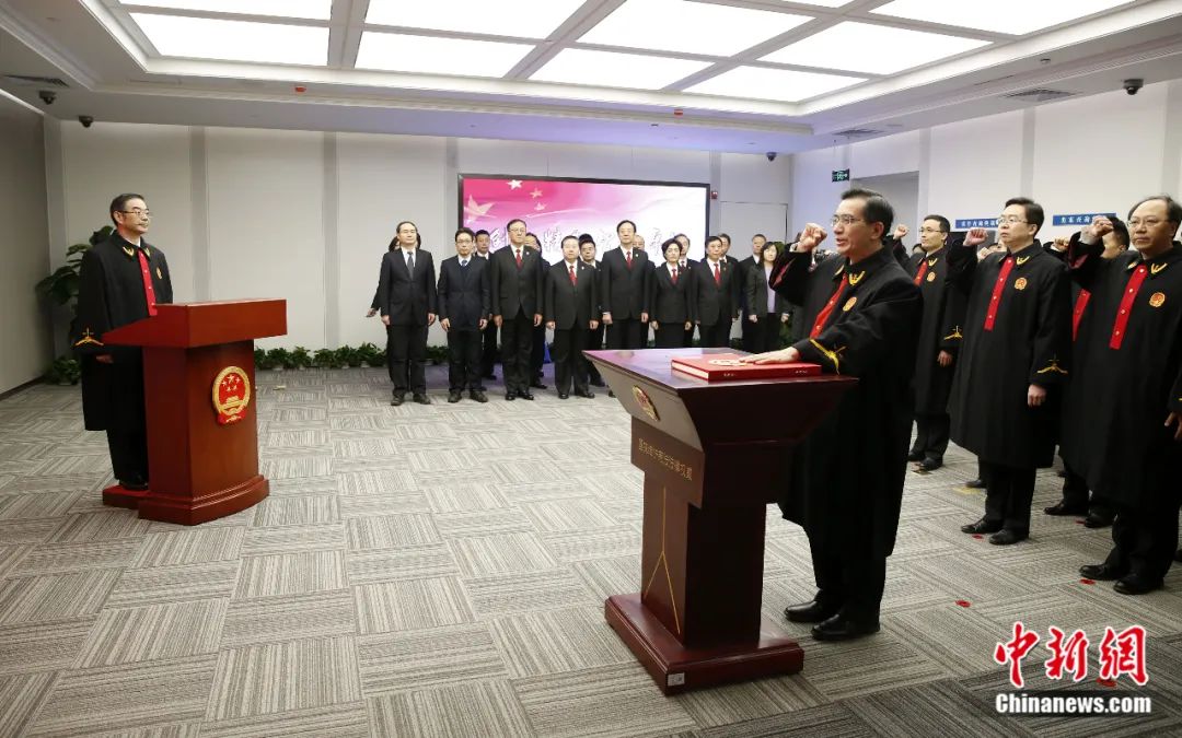 2019年1月1日,中國最高人民法院知識產權法庭在北京揭牌成立,最高法知識產權法庭全體法官進行憲法宣誓。李慧思 攝