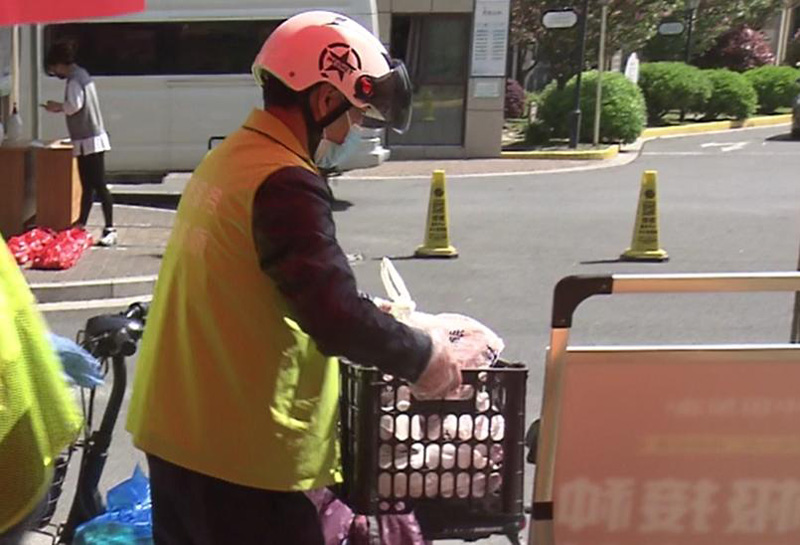 在玉麟名邸小區(qū),前一天晚上居民們通過居委訂購的蔬菜和肉類食品今天上午已經(jīng)抵達(dá)各暫存點(diǎn)位,陸續(xù)有居民接到通知前來取貨。除了蔬菜肉類食品,在昨天城橋鎮(zhèn)公布的生活物資保供指南中,還增設(shè)了米、油、調(diào)味料、衛(wèi)生用品等套餐,由各村居根據(jù)各自實(shí)際情況組織集中代購和分發(fā)?!靶^(qū)居民錯峰分時(shí)領(lǐng)取,開放式的老街小巷,我們安排每戶送上門?!倍帕柙平榻B。