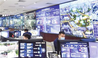 走進(jìn)這座智慧城市的“中樞”──生態(tài)城“城市大腦”運(yùn)營(yíng)中心,只見以深藍(lán)為主色調(diào)的超大液晶屏鋪滿整面墻,科技感拉滿。屏幕上的數(shù)據(jù)和信息背后,是建設(shè)、環(huán)境、醫(yī)療、應(yīng)急等10多個(gè)領(lǐng)域的實(shí)時(shí)運(yùn)行情況,涉及30余個(gè)系統(tǒng)、400余項(xiàng)指標(biāo)。工作人員目不轉(zhuǎn)睛地監(jiān)測(cè)、記錄、反饋,在做到心中有“數(shù)”的同時(shí),也將城市管理運(yùn)營(yíng)模式從“被動(dòng)處置”轉(zhuǎn)為“主動(dòng)干預(yù)”。