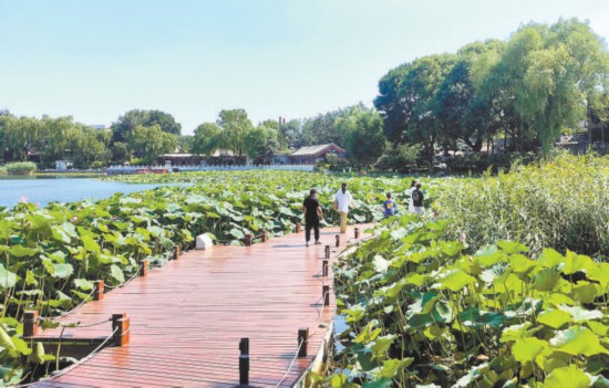 近幾年來,什剎海西海通過拆除違建、疏通堵點(diǎn)亮出岸線,還湖于民,讓西?!办o”下來。西海濕地全線共新建7處總計(jì)1000平方米的環(huán)湖觀景棧道,成為市民休憩觀景的親水之地。