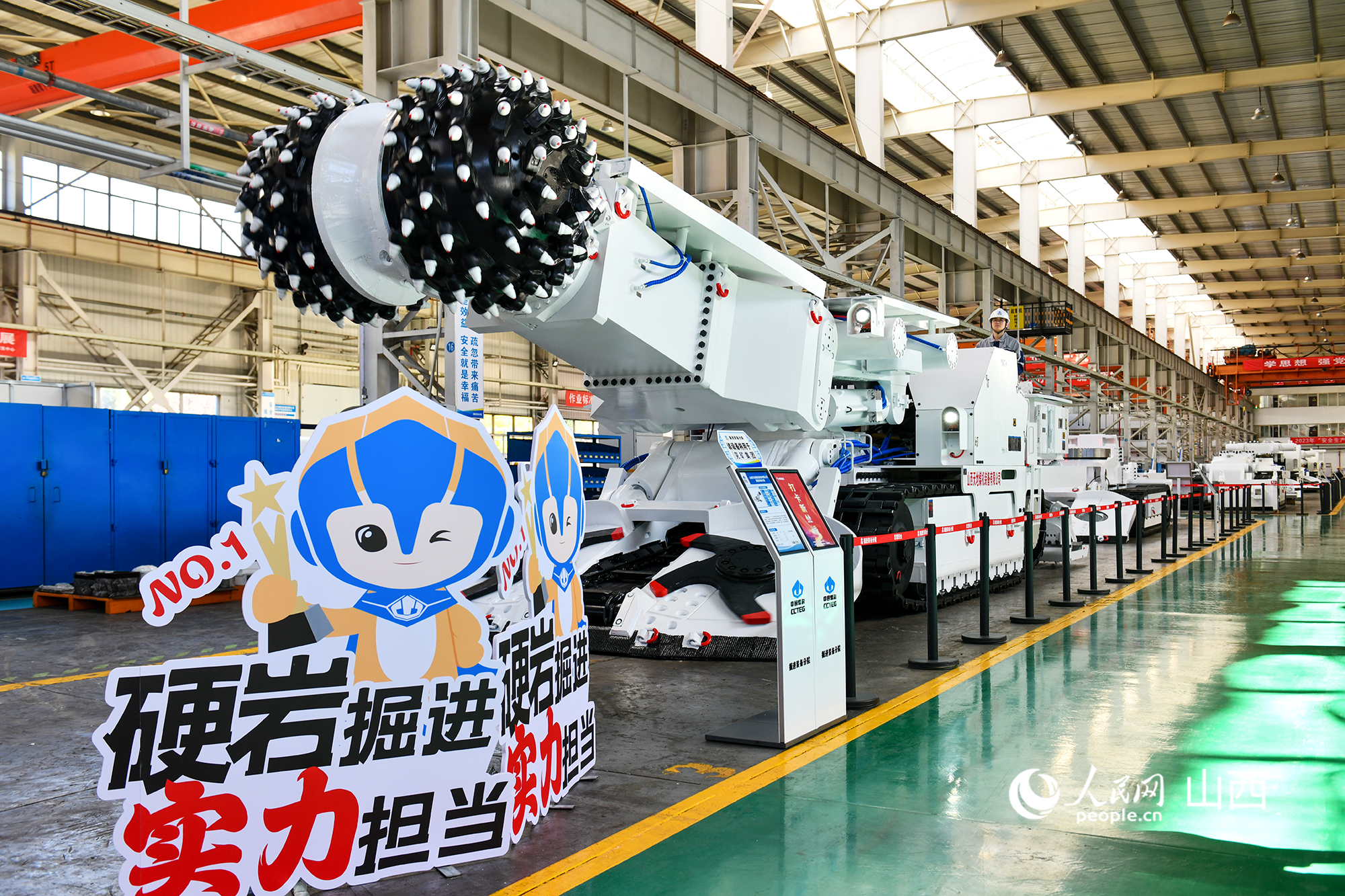太原研究院彩虹基地生產車間陳列的巷道掘進裝備。人民網記者 焦搏文攝