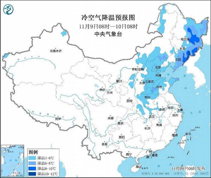 受冷空氣影響,9-13日,中東部地區(qū)將自北向南先后出現(xiàn)大風(fēng)降溫天氣,大部地區(qū)過(guò)程累計(jì)降溫幅度有6~10℃,黑龍江東部、吉林東部以河南、湖北、湖南、貴州和廣西等地的部分地區(qū)降溫可達(dá)12℃以上;南方地區(qū)強(qiáng)降溫主要出現(xiàn)在10-13日;13日前后最低氣溫0℃線位于山東中南部-河南北部一線,江淮地區(qū)最低氣溫5℃左右。
