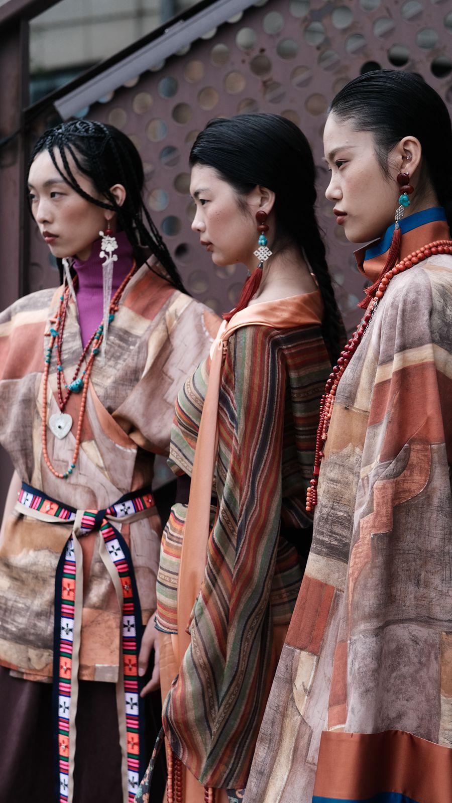 以馬乖在中國(guó)國(guó)際時(shí)裝周的發(fā)布產(chǎn)品為例,連續(xù)多季深根民族文化的傳承與創(chuàng)新,在跟隨株洲援藏工作隊(duì)進(jìn)入扎囊縣后,馬乖開(kāi)始深入發(fā)掘藏族服飾與時(shí)尚消費(fèi)的融合創(chuàng)新,跟其他設(shè)計(jì)師借鑒少數(shù)民族元素做新產(chǎn)品的初衷不同,素白所呈現(xiàn)的新款背后是整個(gè)團(tuán)隊(duì)研發(fā)的藏族非遺產(chǎn)品的動(dòng)態(tài)活化過(guò)程,氆氌之鄉(xiāng)的“經(jīng)濟(jì)產(chǎn)品”是馬乖展開(kāi)文化元素呈現(xiàn)后的落點(diǎn),共建面料研發(fā)中心,將手工藝面料再造作為時(shí)尚服飾的亮點(diǎn),研發(fā)新產(chǎn)品,提質(zhì)文化成果的經(jīng)濟(jì)轉(zhuǎn)化。觀(guān)察素白發(fā)布的往季產(chǎn)品,不難發(fā)現(xiàn),精粹歷史文化遺產(chǎn)、復(fù)興民族手工藝、打造時(shí)尚融合新品是品牌發(fā)展常態(tài),從大力發(fā)展植物染到玫瑰纖維的研發(fā)和使用,馬乖一直以設(shè)計(jì)之力、品牌影響在為消費(fèi)者尋找更適合中國(guó)人自己的時(shí)尚發(fā)展模型。