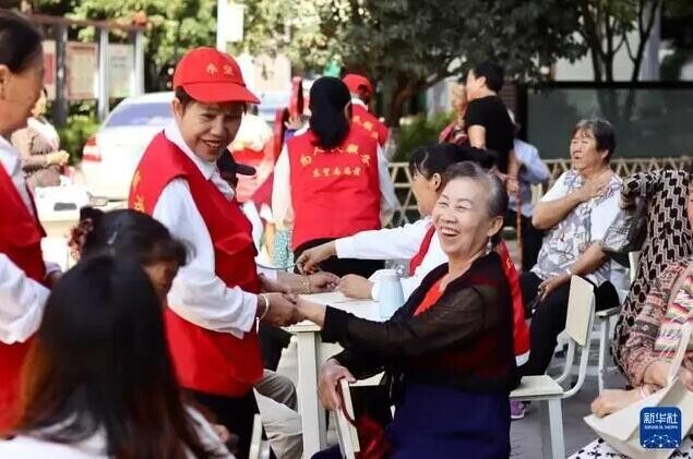 民族團結(jié)進步創(chuàng)建進社區(qū)。這是9月20日,獲評“全國民族團結(jié)進步模范集體”的昆明市盤龍區(qū)聯(lián)盟街道小壩社區(qū)志愿者為居民提供志愿服務(wù)。(莫欣竹 攝)