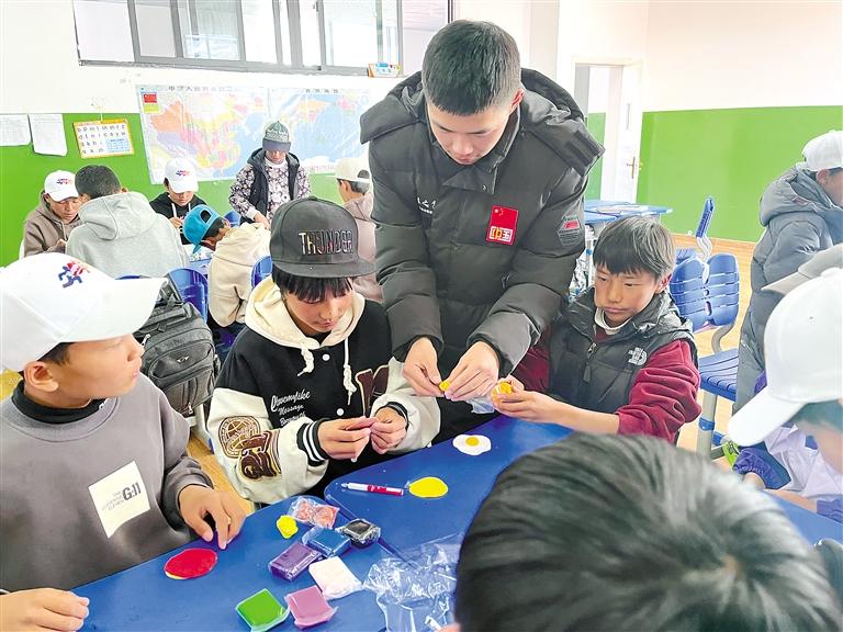 圖為支教隊員余梓鑫和孩子們一起完成課堂小游戲。