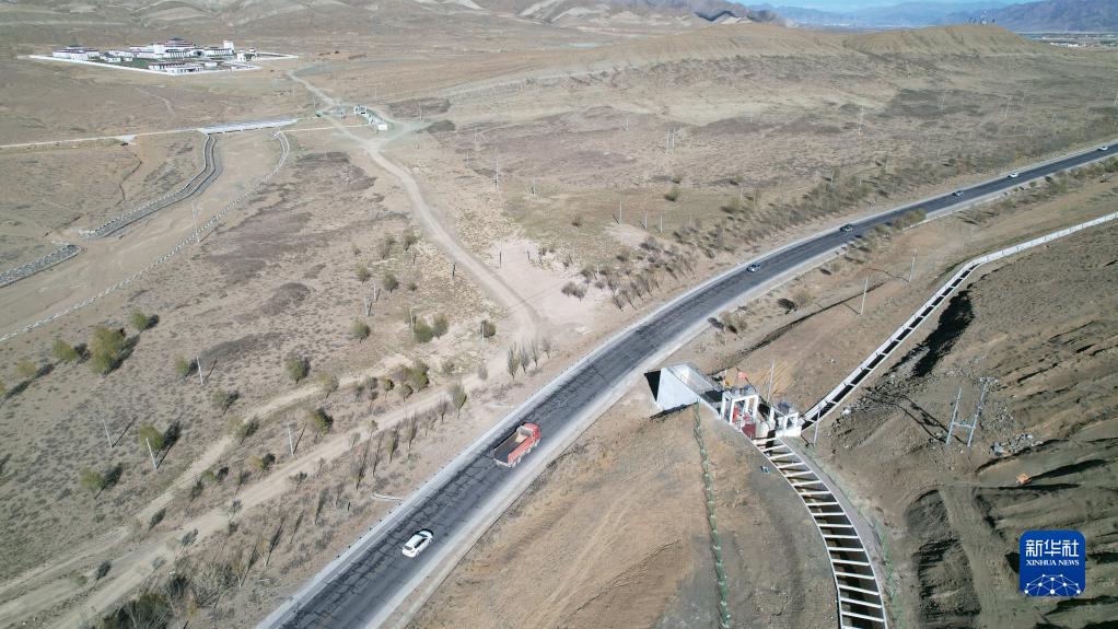 拉洛水利樞紐工程穿越318國(guó)道的灌渠。新華社記者 劉詩(shī)平 攝