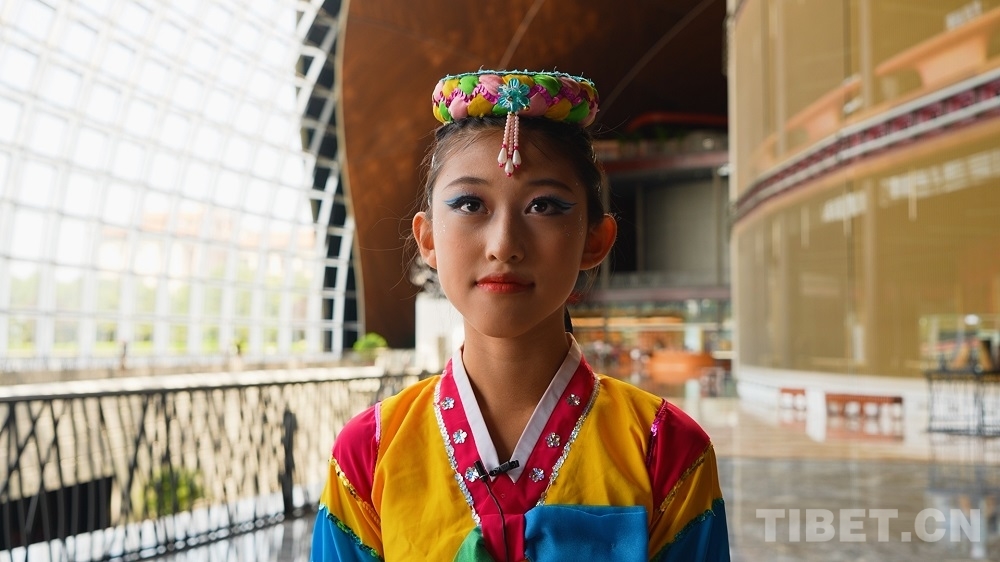 隨后,同學(xué)們相繼帶來(lái)多民族舞蹈展演,不僅有苗族舞蹈《岜沙獵人》、土家族舞蹈《阿達(dá)畢的心聲》,還有朝鮮族舞蹈《嬉舞泉韻》、漢族舞蹈《青傘映紅妝》、蒙古族舞蹈《美麗的草原我的家》、維吾爾族舞蹈《錦繡中華》和藏族舞蹈《歡樂牧民生活》等民族舞蹈串燒,演出熱烈歡快、獨(dú)具特色,讓觀眾們感受到我國(guó)各民族舞蹈的藝術(shù)特色和人們對(duì)美好生活的熱愛與期待。來(lái)自北京市航天圖強(qiáng)小學(xué)的蔡雨桐對(duì)記者表示,此次能夠跟西藏來(lái)的同學(xué)們一起朝夕相處、排練節(jié)目,讓她深刻感受到漢藏文化的交流交融?!拔覀兿嗵幍檬秩谇ⅲ谌粘I钪形乙舱J(rèn)識(shí)了很多藏族的小朋友,回去之后我們還會(huì)繼續(xù)通過書信聯(lián)系保持溝通,她們的淳樸、善良給我留下了深刻的印象。”