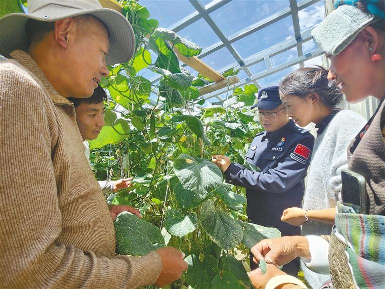 次仁加措與所里民警不僅定期給曲宗村的老人送去蔬菜,還會(huì)邀請(qǐng)群眾到派出所的溫室大棚參觀學(xué)習(xí),毫無(wú)保留地傳授溫室大棚種植技術(shù),播種綠的希望,讓更多人能品嘗到新鮮的蔬菜水果。