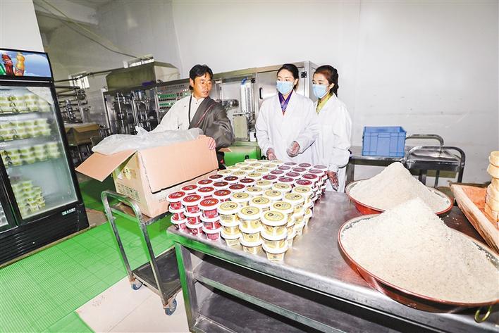 圖為墨竹工卡縣斯布鄉(xiāng)牦牛奶制品專(zhuān)業(yè)合作社的工作人員在加工特色奶制品。記者 格桑吉美 攝