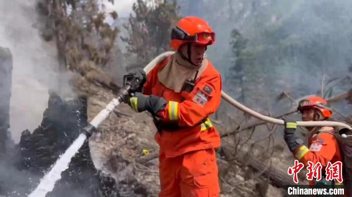 圖為索朗達(dá)杰在西藏林芝市察隅縣控檔村參加森林火災(zāi)撲救任務(wù)。西藏自治區(qū)森林消防總隊那曲大隊供圖