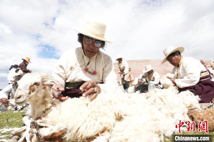 在剪羊毛現場,牧民們分工明確,動作熟練。他們先將綿羊固定在地面上,然后用特制的剪刀將羊毛一片片剪下。不到一會兒功夫,一只藏羊便煥然一新,輕松地站立起來。