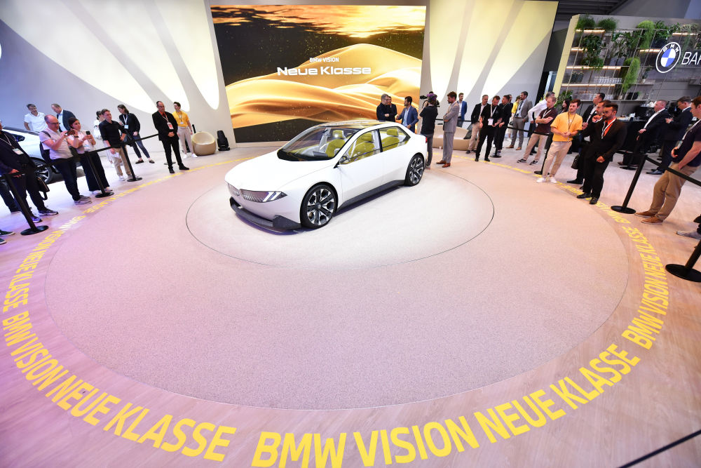 2023年9月5日,在德國(guó)慕尼黑,人們?cè)诘聡?guó)國(guó)際汽車(chē)及智慧出行博覽會(huì)的寶馬展區(qū)參觀。新華社記者任鵬飛攝
