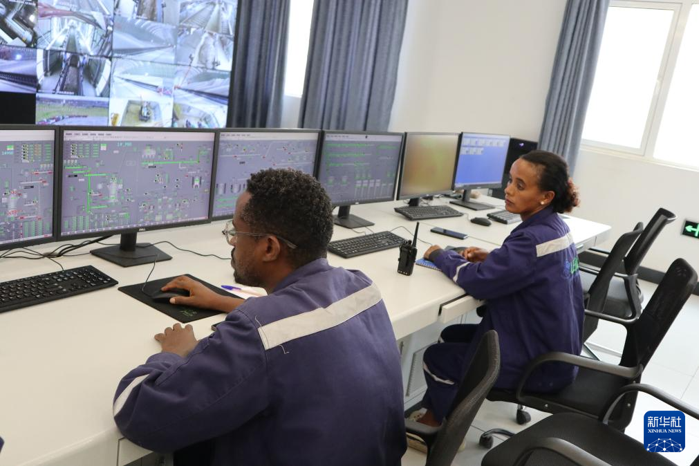 3月5日,當?shù)貑T工在埃塞俄比亞萊米國家水泥廠的中控室工作。新華社記者 劉方強 攝