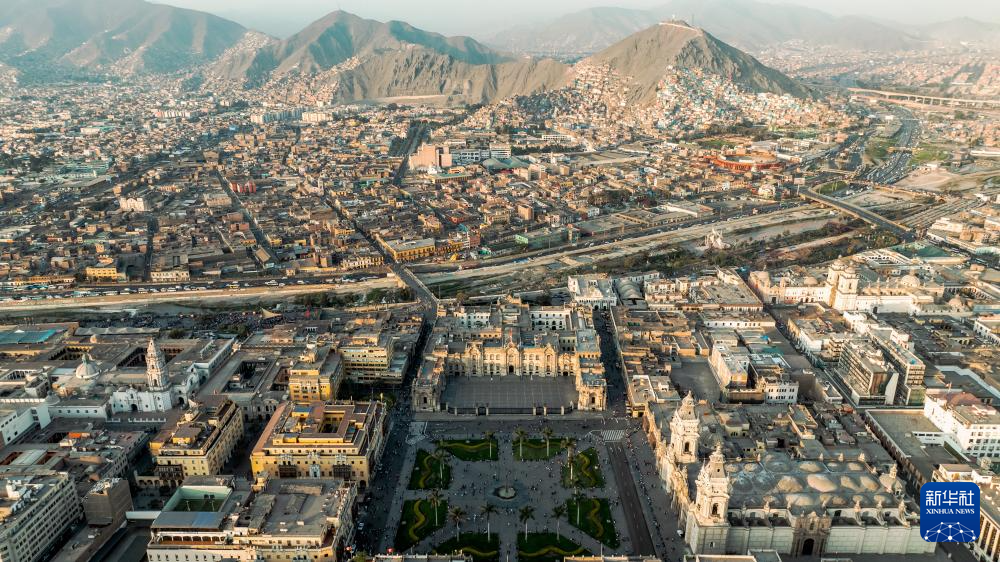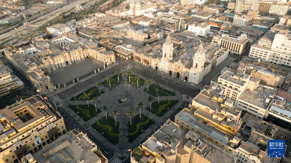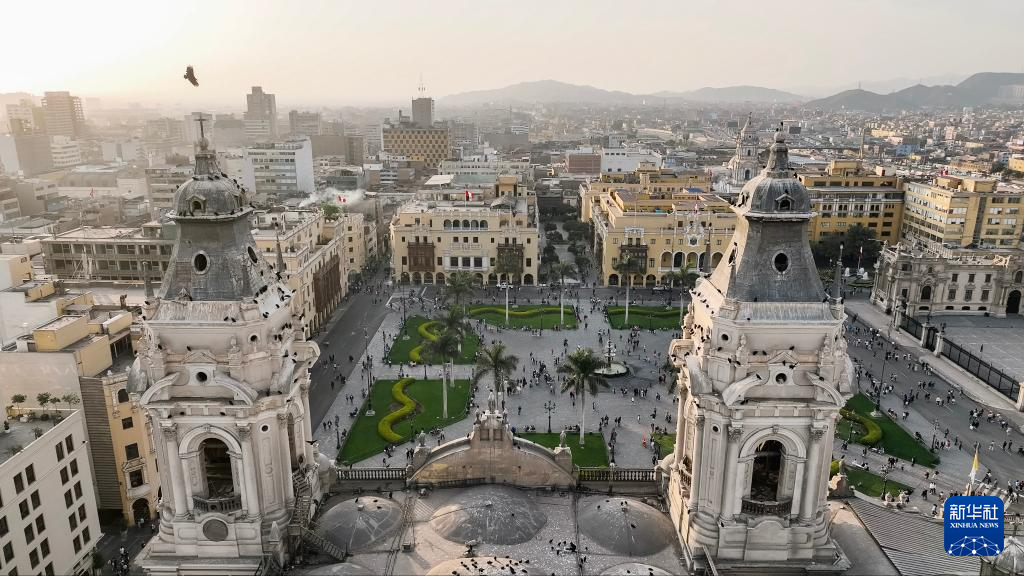 這是11月7日拍攝的秘魯首都利馬老城的圣馬丁廣場(無人機照片)。