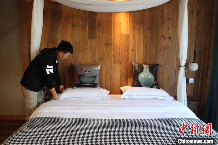 11月8日,浙江龍泉溪頭村,葉柏青打理充滿青瓷文化的房間?!  ≈芙?攝