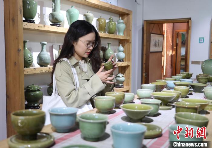 11月8日,浙江龍泉溪頭村,游客選購(gòu)由龍窯燒制的青瓷?!   ≈芙?攝