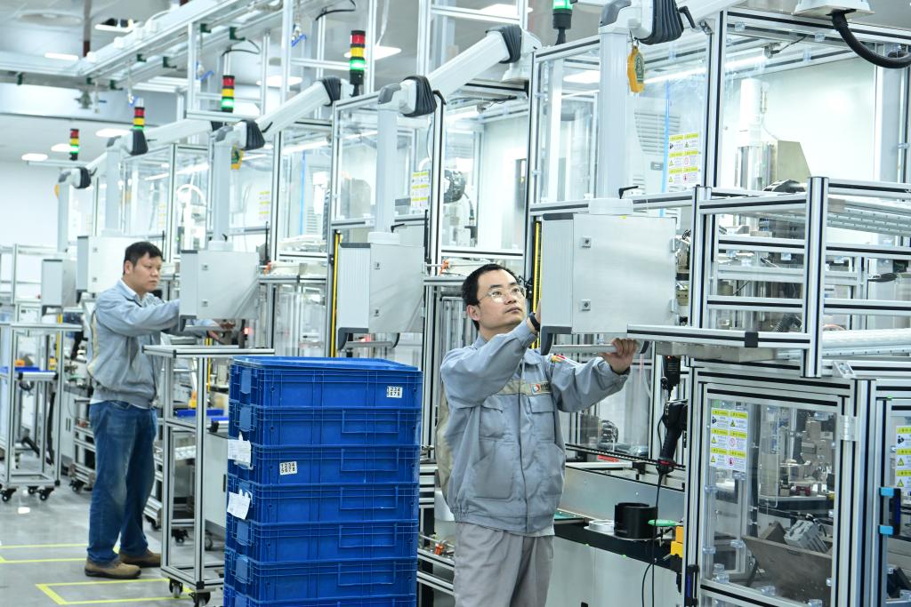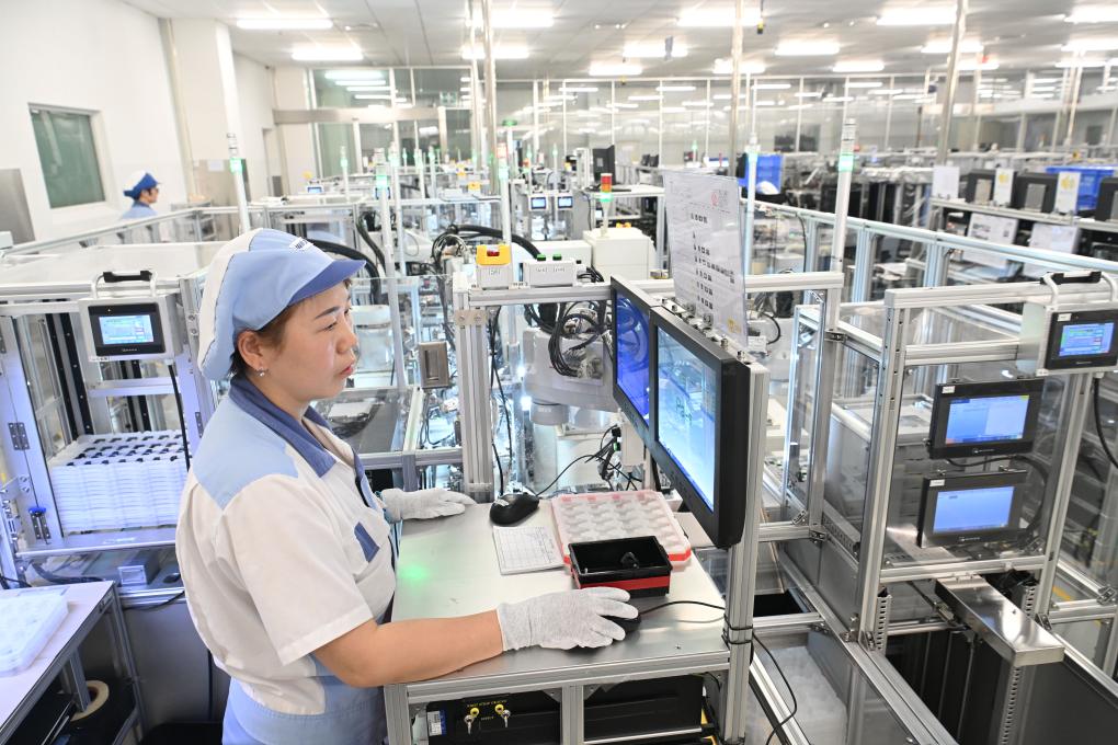 在江蘇省太倉港經(jīng)濟(jì)技術(shù)開發(fā)區(qū)博馬(蘇州)控股有限公司,生產(chǎn)技術(shù)人員在生產(chǎn)汽車渦輪增壓器產(chǎn)品(6月19日攝)。新華社發(fā)(計(jì)海新 攝)