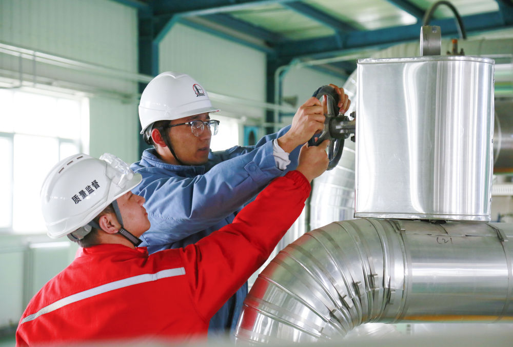 2024年2月22日,在新疆庫車市,中國石化新星新疆綠氫新能源有限公司工作人員對設(shè)備進(jìn)行巡檢。新華社發(fā)(吐爾松·托胡提 攝)