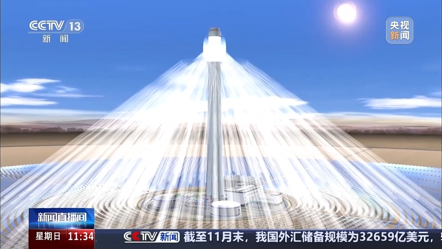 在戈壁荒漠中,這些“向日葵”如何能夠發(fā)電?其中有一個聳立的高塔,叫做吸熱塔。塔高達180米,相當于一個60層高的住宅樓。塔內管道里面裝的是熔鹽的液體,一共有兩萬一千多噸。這一萬多朵“向日葵”鏡子和這些熔鹽要在陽光的作用下發(fā)生一段奇妙的反應,最終產(chǎn)生電。而最為奇特的是,這些電并不僅僅是在白天產(chǎn)生,還可以在夜晚發(fā)出。