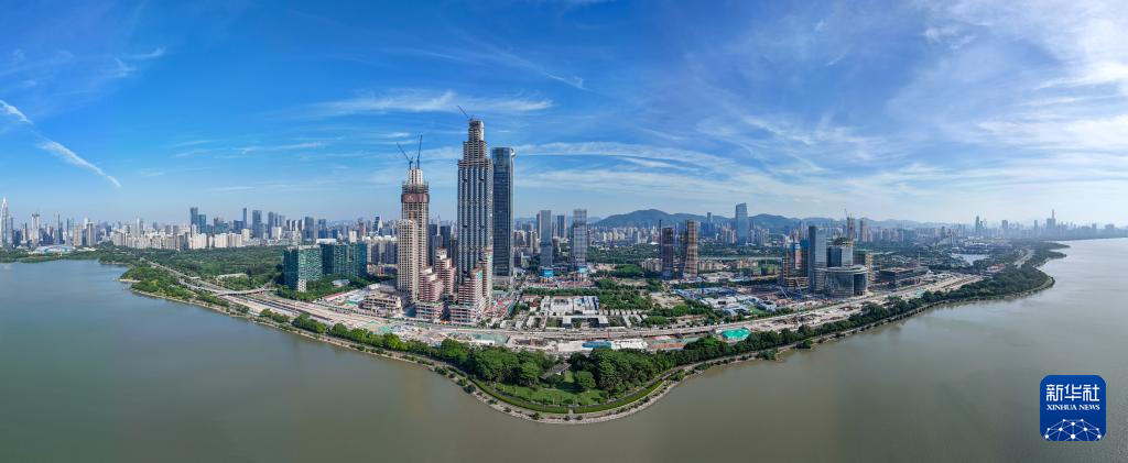 這是建設(shè)中的深圳灣超級(jí)總部基地(2024年10月3日攝,無人機(jī)全景照片)。