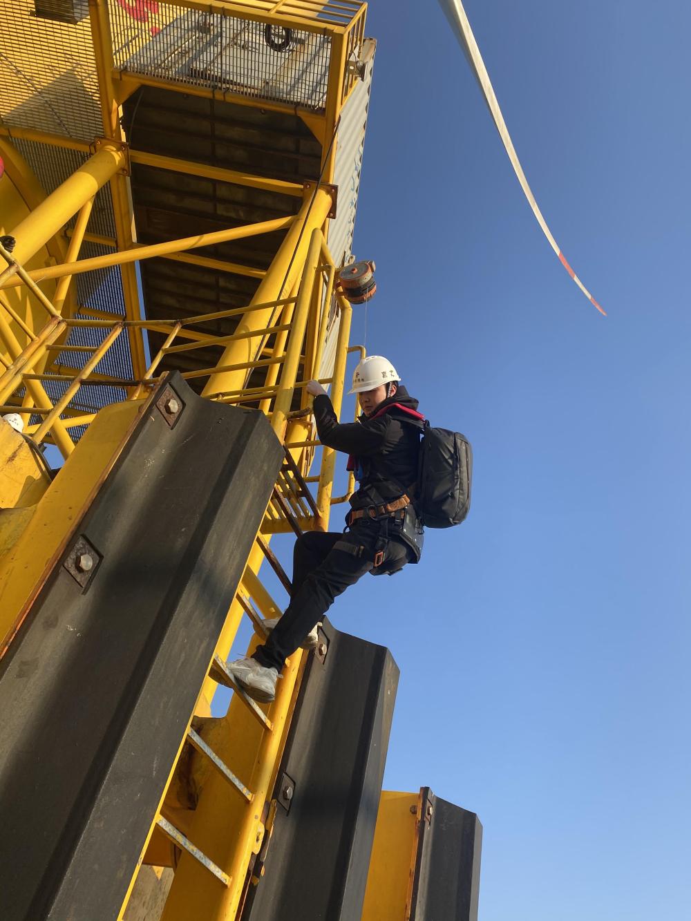 爬上數(shù)十米高的風(fēng)機(jī)進(jìn)行檢修