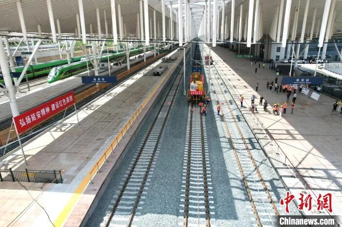 圖為2025年7月1日西延高鐵鋪軌到達延安站。張遠 攝
