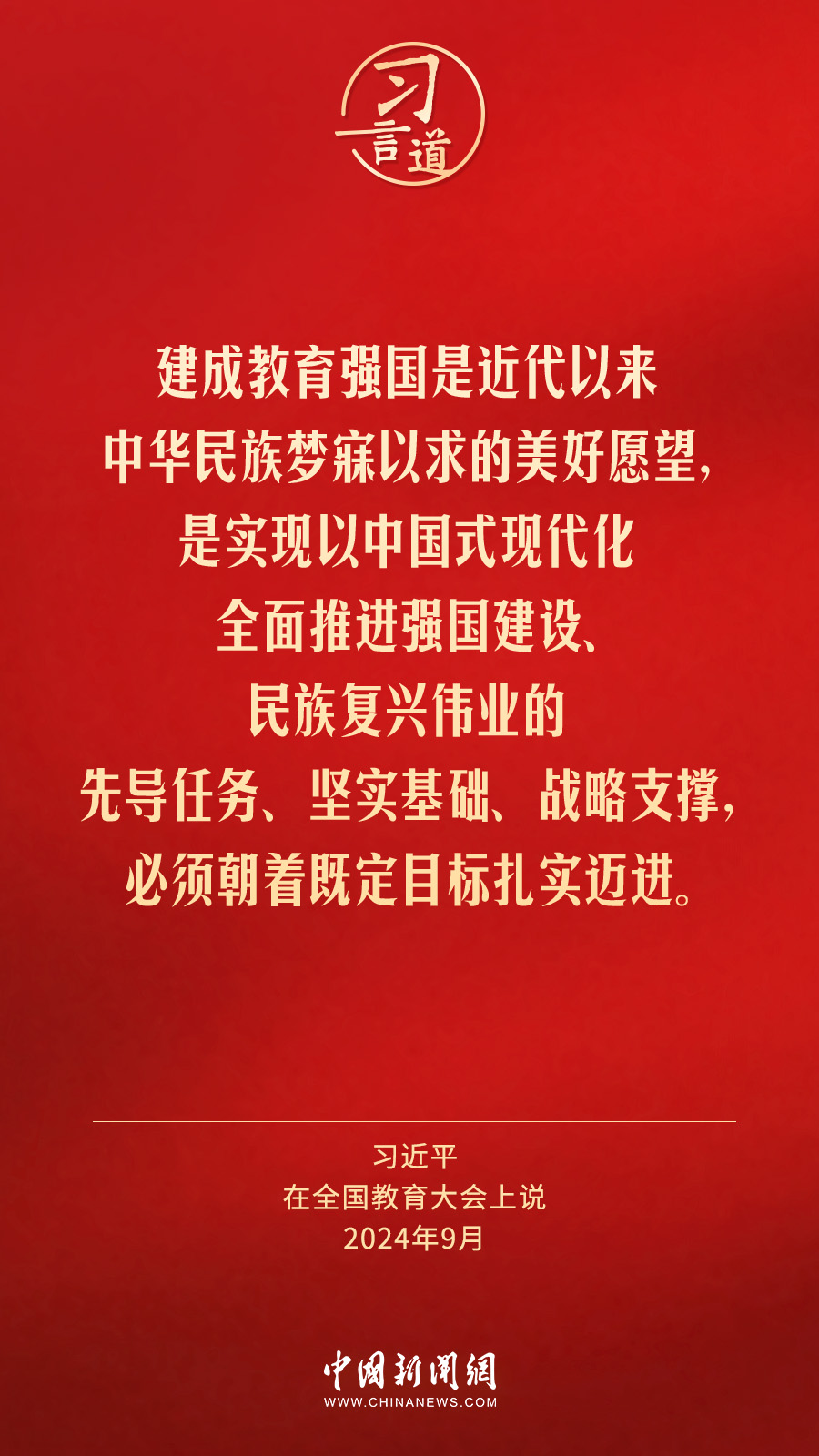 全國教育大會(huì)9日至10日在北京召開。中共中央總書記、國家主席、中央軍委主席習(xí)近平出席大會(huì)并發(fā)表重要講話。習(xí)近平指出——