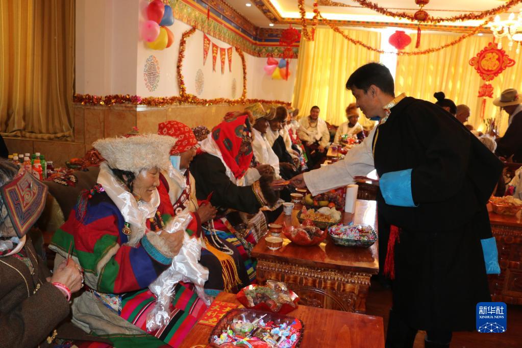 阿里地區(qū)特困人員集中供養(yǎng)服務中心的老人們在歡度藏歷新年。(2022年3月2日攝,新華社發(fā))