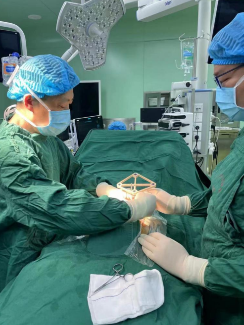 圖為吳宏華主任術(shù)中于健側(cè)髂后上級(jí)置入信號(hào)收集裝置