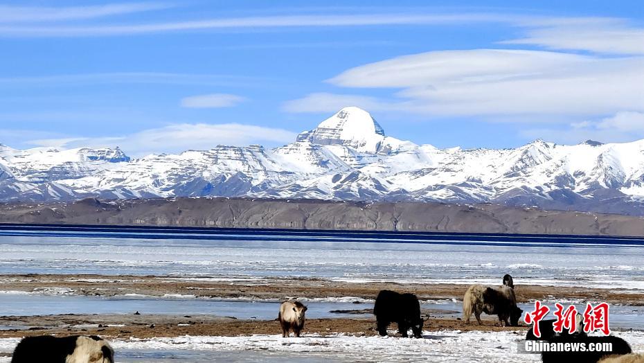 每年入冬后,西藏阿里地區(qū)普蘭縣農(nóng)牧區(qū)牦牛出現(xiàn)在岡仁波齊神山腳下及瑪旁雍錯圣湖旁,呈現(xiàn)“天邊牧場”的最美盛景。這里正是西藏瑪旁雍錯濕地國家級自然保護區(qū),視野開闊,水草豐美?,斉杂哄e的湖水主要來自岡底斯山脈的雪山融水,幽美而清澈。當?shù)啬撩窠崭嬖V記者,每年冬季,周邊的農(nóng)牧區(qū)將把牦牛趕到這里過冬,在冬季這里的牦牛只喝“圣水”,“都是有口福的牛。” 貢桑拉姆 攝