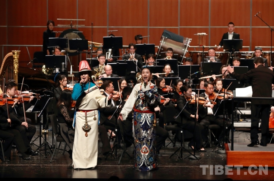 圖為音樂會現(xiàn)場,藏族歌手演唱主題曲《金橋》 攝影:陳衛(wèi)國