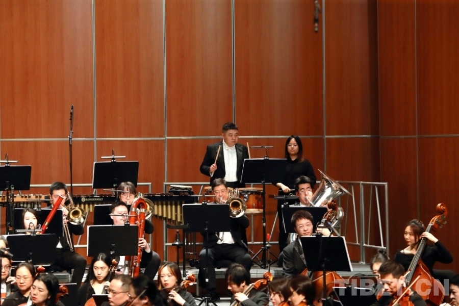 音樂會上,兩位藏族歌手演唱了交響樂主題曲《金橋》,歌曲高亢嘹亮、曲調(diào)悠揚(yáng)。藏戲、山歌等元素的加入,讓交響樂更加豐富,充滿了濃郁的民族風(fēng)情。