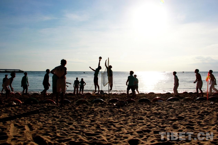 圖為第十二屆全國(guó)少數(shù)民族傳統(tǒng)體育運(yùn)動(dòng)會(huì)民族大聯(lián)歡活動(dòng)現(xiàn)場(chǎng),各代表團(tuán)運(yùn)動(dòng)員們感受沙灘排球 攝影:劉莉