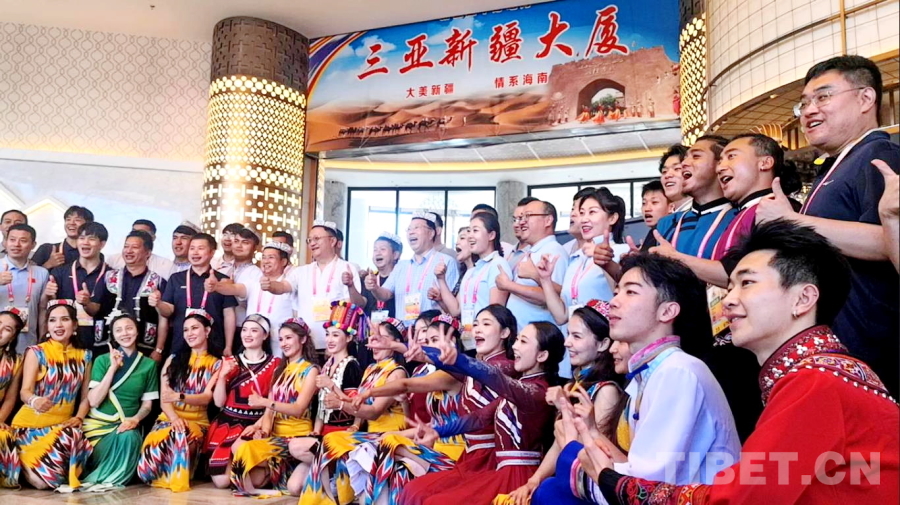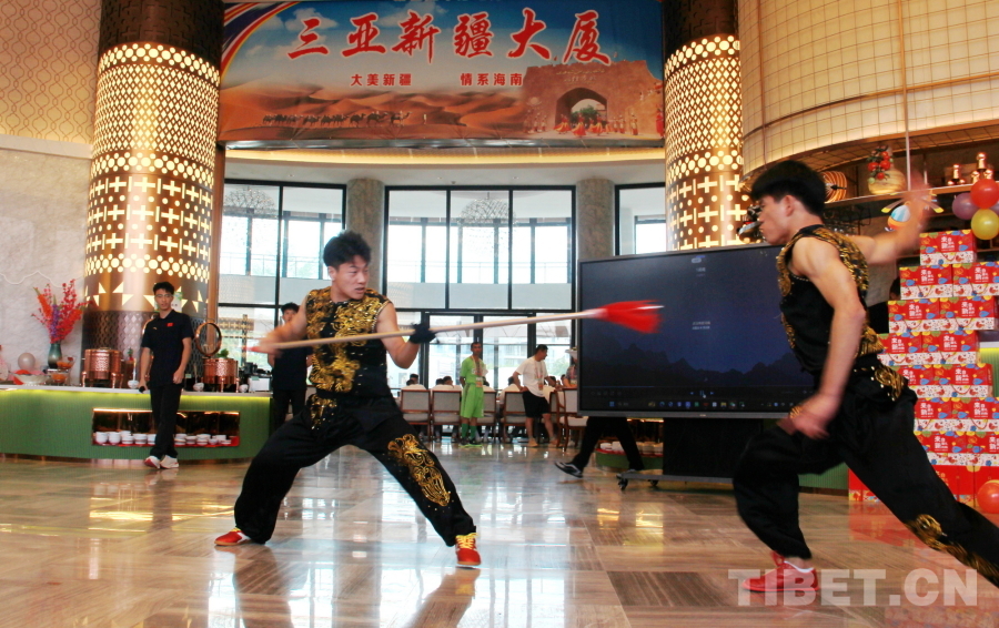 中國(guó)西藏網(wǎng)訊 精彩的傳統(tǒng)武術(shù)、悠揚(yáng)的歌聲、優(yōu)美的舞蹈……一陣陣掌聲、笑聲、歡呼聲從新疆代表團(tuán)駐地海南三亞新疆大廈傳出。11月27日,新疆代表團(tuán)邀請(qǐng)湖南、云南、黑龍江代表團(tuán)來(lái)到駐地舉行主題為“交各民族好朋友”的聯(lián)誼活動(dòng)。