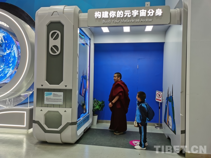 當日下午,西藏佛學院一行來到中國科學技術(shù)館參觀學習。走進展廳,師生們立即被展陳的航天器材吸引,紛紛上前合影留念。科技館內(nèi)有很多孩子正在參觀,部分外向的孩子熱情地與西藏佛學院師生們打招呼,師生們也歡喜地回應著。雙向扶梯上,孩子們熱情洋溢地上行,恰逢佛學院的師生們下行,彼此擦肩而過、揮手示意。