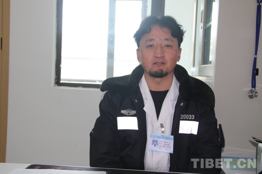 中國(guó)西藏網(wǎng)訊 雪白的大褂外披一件藏藍(lán)色冬裝便衣,這便是瑪曲縣阿萬倉(cāng)中心衛(wèi)生院的執(zhí)業(yè)醫(yī)師楊長(zhǎng)才旦。他的胸牌上寫著“科室:洛隆村衛(wèi)生室”,表明他是鎮(zhèn)上五個(gè)大隊(duì)其中之一的村醫(yī),集中在中心衛(wèi)生院輪班為病患看診。