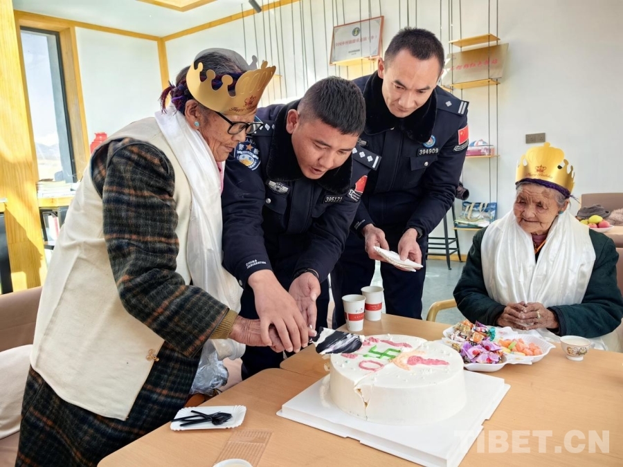 活動中,警民攜手為老人們精心準(zhǔn)備了一場慶祝派對,邊防民警、社區(qū)兩委班子成員、駐村工作隊隊員為老人獻(xiàn)上祝福的歌曲,定做精美的蛋糕,穿上代表高壽的藏式服裝等,并與老人們嘮家常,傾聽他們的生活故事和需求?!?/span>