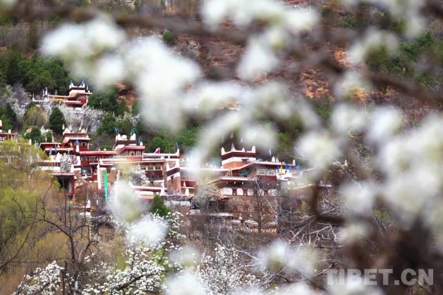 圖為梨花中的藏寨