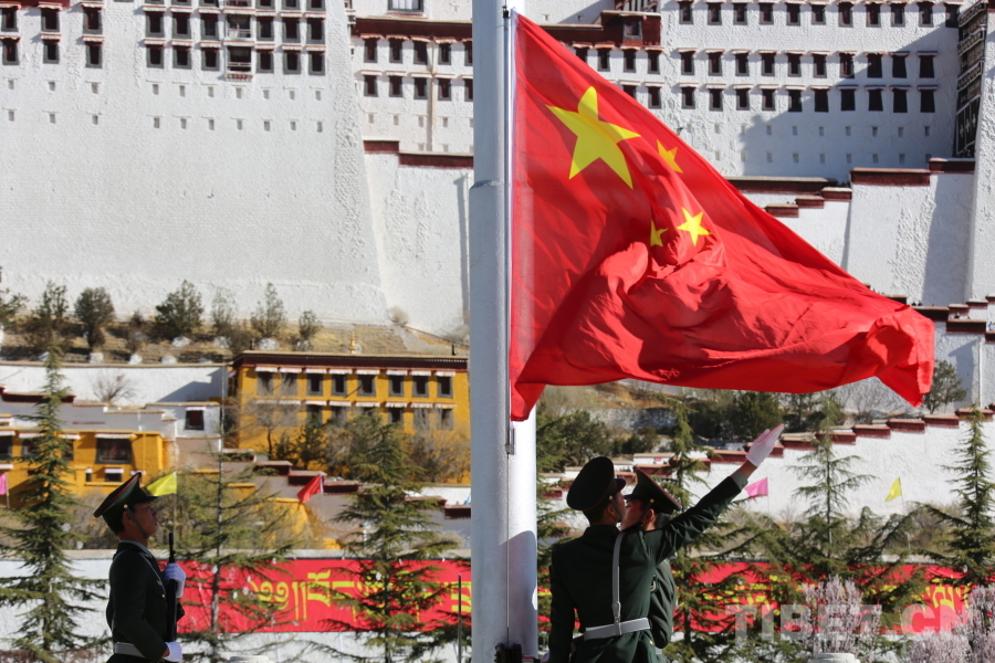 圖為2025年3月28日,國旗在布達(dá)拉宮廣場升起 攝影:旦曲