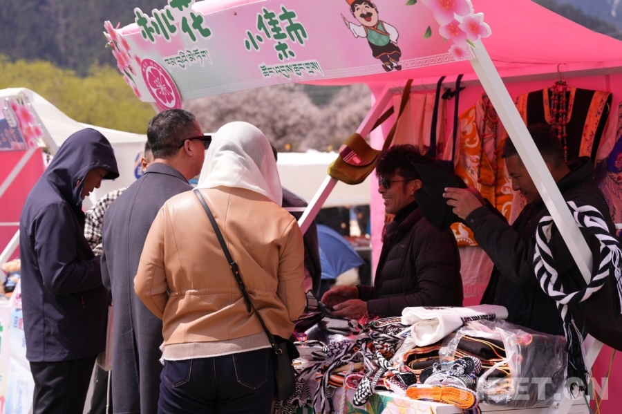 沿著蜿蜒的小路,一邊是錯(cuò)落有致的桃花樹,一邊是特色集市。“這些是工布男女服飾、這是馬套、這是藏式包包……都是我們合作社的工作人員手工制作的。”在舞臺(tái)一旁的桃花小集市,林芝市巴宜區(qū)絲綢藏裝定制農(nóng)牧民專業(yè)合作社負(fù)責(zé)人尼瑪扎西正向游客一一介紹自家展銷點(diǎn)的產(chǎn)品以及其背后的文化和制作過(guò)程。經(jīng)過(guò)一番討價(jià)還價(jià),一千余元的“大單子”順利成交,游客將一件件精美的巴宜“小禮品”裝進(jìn)袋子和尼瑪扎西揮手告別。