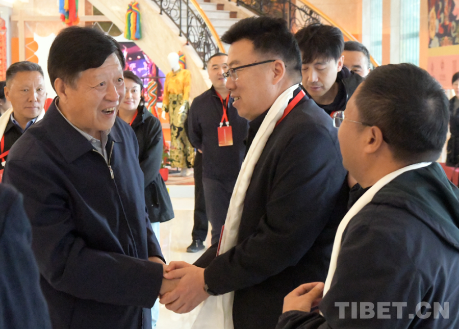 圖為金書波歡迎西藏自治區(qū)民營企業(yè)家學(xué)習(xí)參觀團抵京