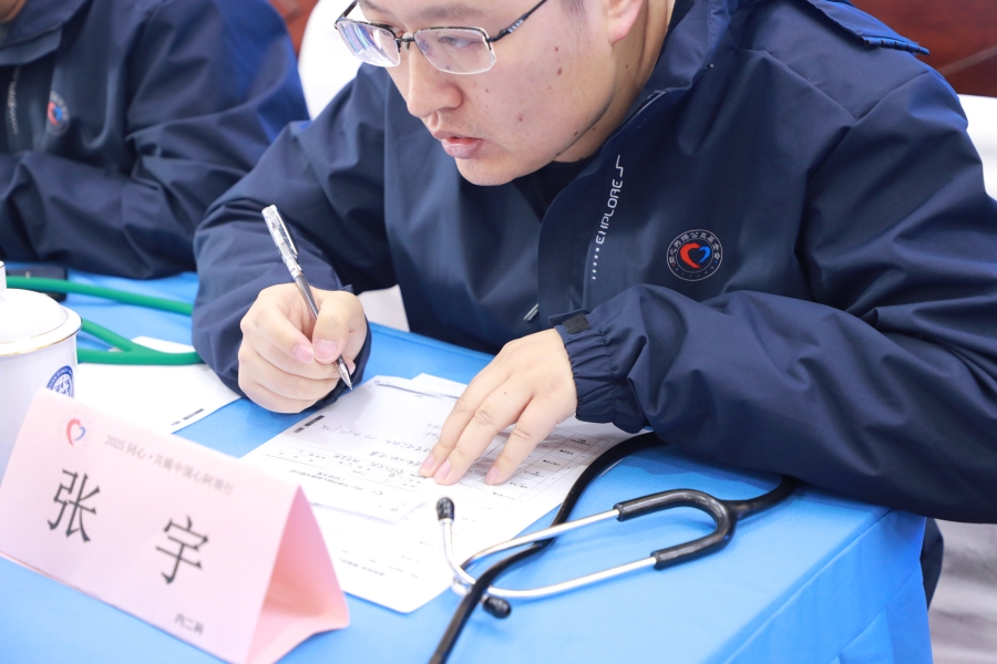圖為北京市通州區(qū)婦幼保健院藥劑科主任馬月靜根據(jù)現(xiàn)場情況做相應(yīng)記錄。此次義診結(jié)束后,馬月靜還為干警們進行了安全用藥科普知識講座 攝影:楊月云
