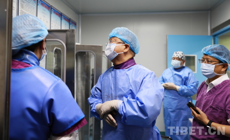 圖為首都醫(yī)科大學附屬北京安貞醫(yī)院心內(nèi)科副主任、主任醫(yī)師陰赪茜(中)趕赴阿壩州人民醫(yī)院手術(shù)救治急性心?;颊撸g(shù)前查看有關(guān)手術(shù)器材 攝影:劉莉