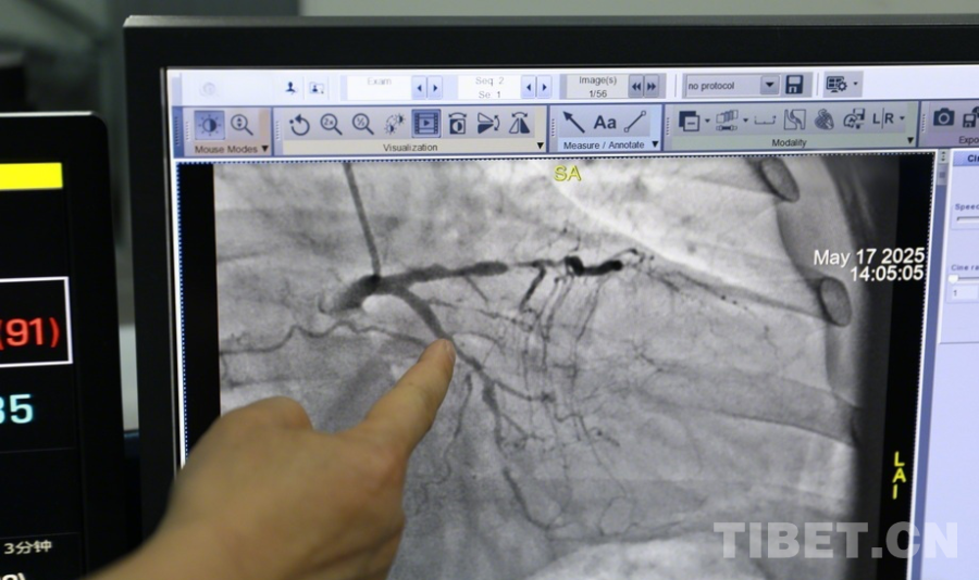 圖為陰赪茜趕赴阿壩州人民醫(yī)院手術(shù)救治急性心?;颊?,屏幕上顯示出患者心臟血管多處問題嚴重 攝影:劉莉