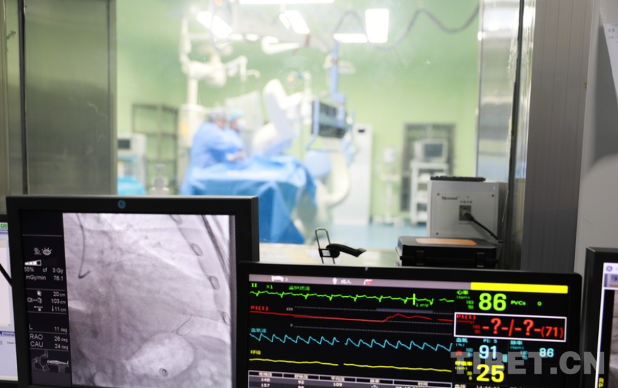 制定好手術(shù)方案后,陰赪茜馬上開始為患者施行微創(chuàng)心臟介入手術(shù),經(jīng)過右側(cè)前臂的橈動脈將微創(chuàng)的手術(shù)器械抵達病變的心臟血管。