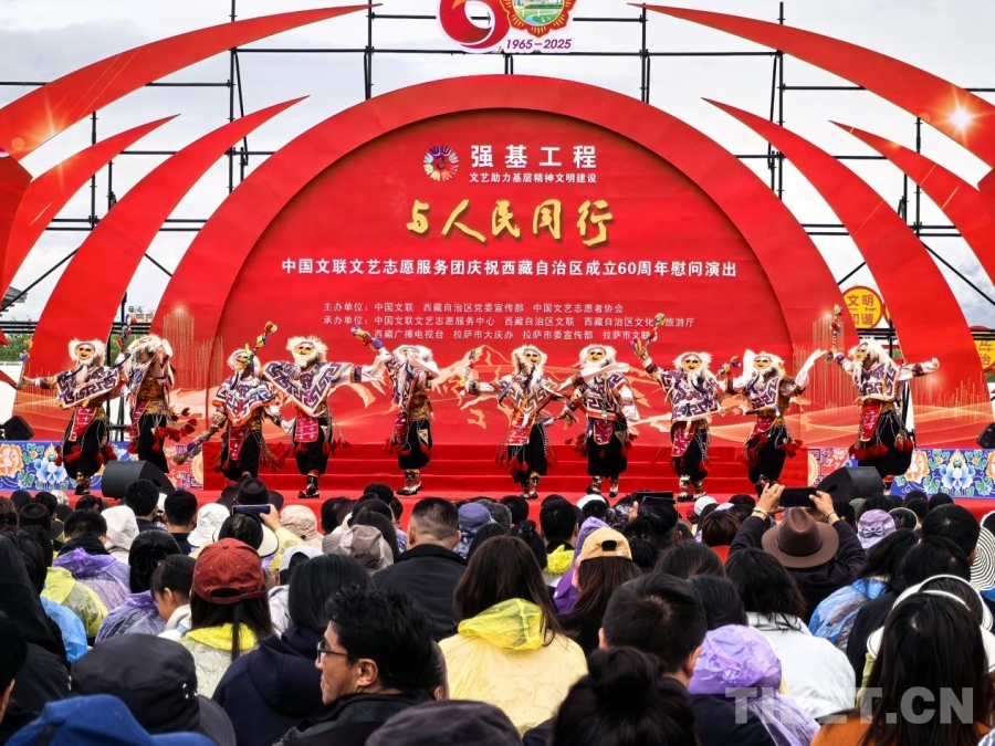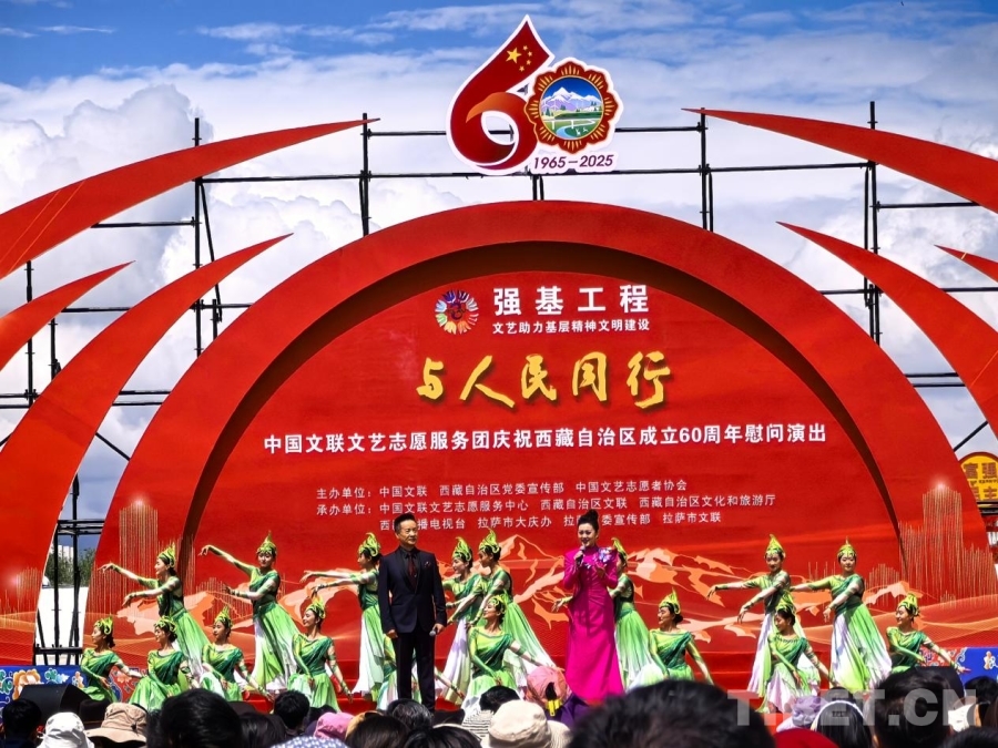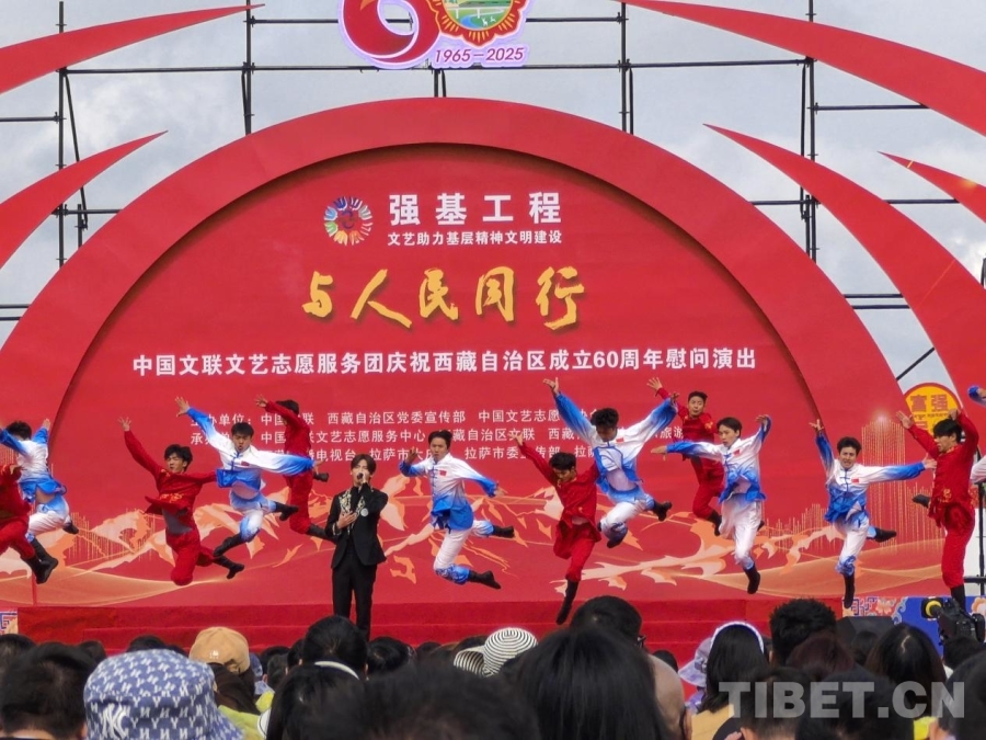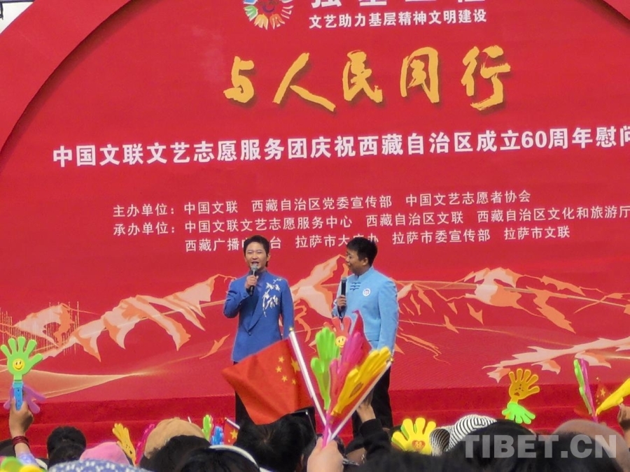 中國(guó)西藏網(wǎng)訊 5月25日上午,由中國(guó)文聯(lián)、西藏自治區(qū)黨委宣傳部、中國(guó)文藝志愿者協(xié)會(huì)共同主辦的慶祝西藏自治區(qū)成立60周年慰問(wèn)演出“與人民同行”在拉薩會(huì)展中心廣場(chǎng)舉行,4000多名干部群眾一同觀看演出。