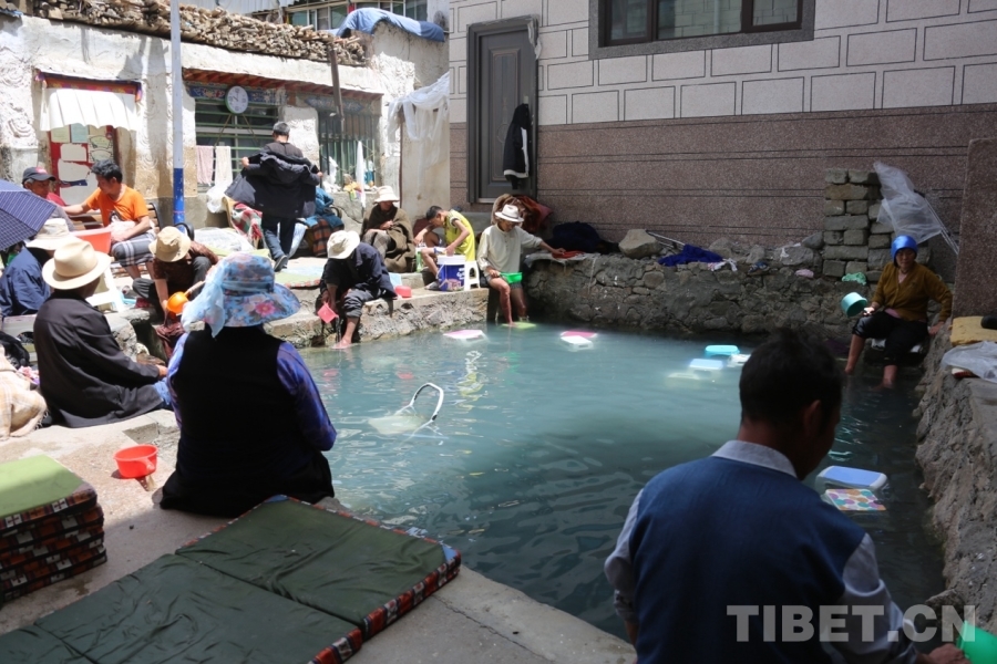 圖為從謝通門縣達(dá)那答鄉(xiāng)頂嘎村來(lái)泡溫泉的群眾