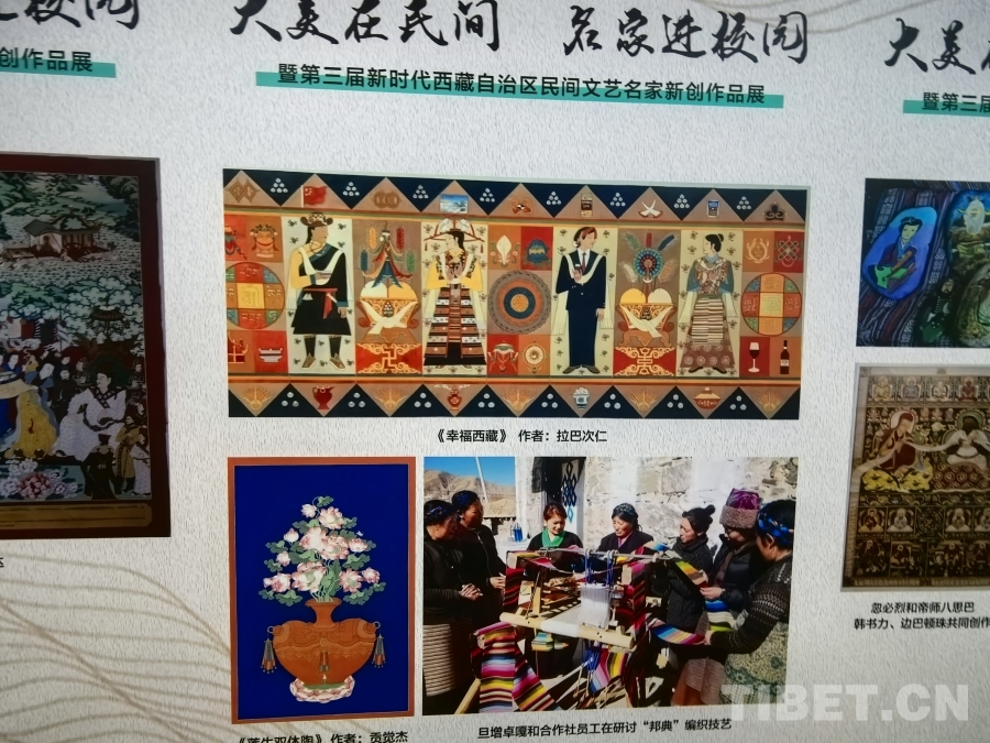 6月20日,“大美在民間——名家進校園暨第三屆新時代西藏自治區(qū)民間文藝名家新創(chuàng)作品展”開展。圖為展覽陳列 攝影:王淑